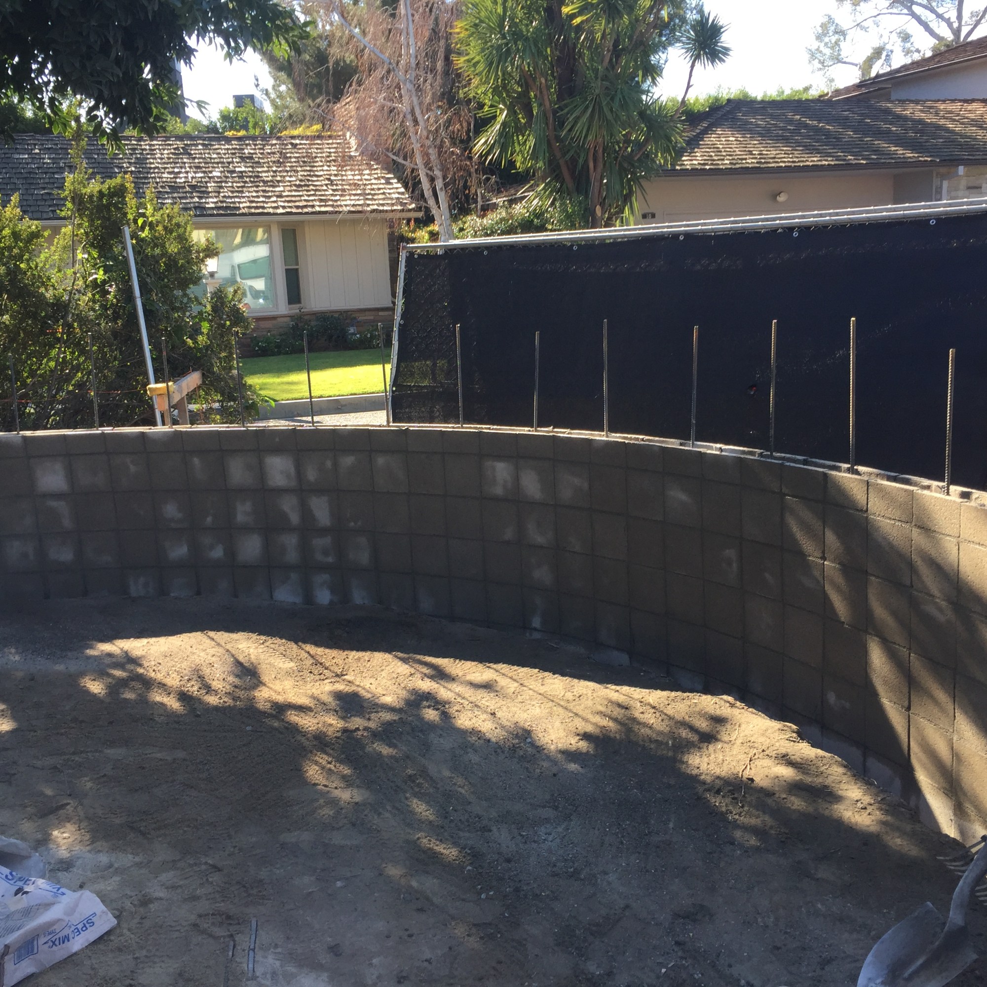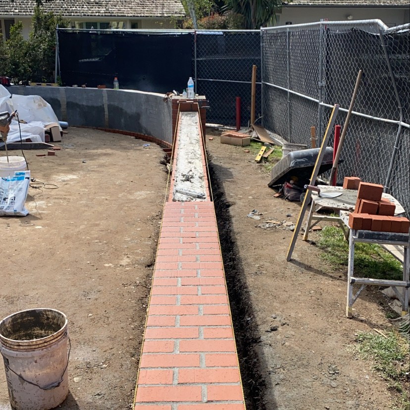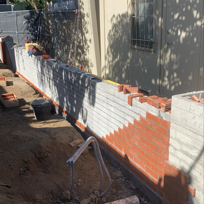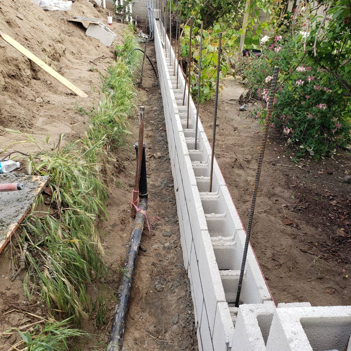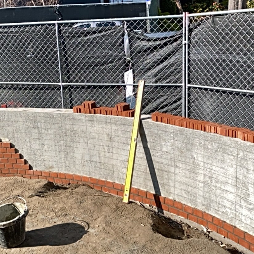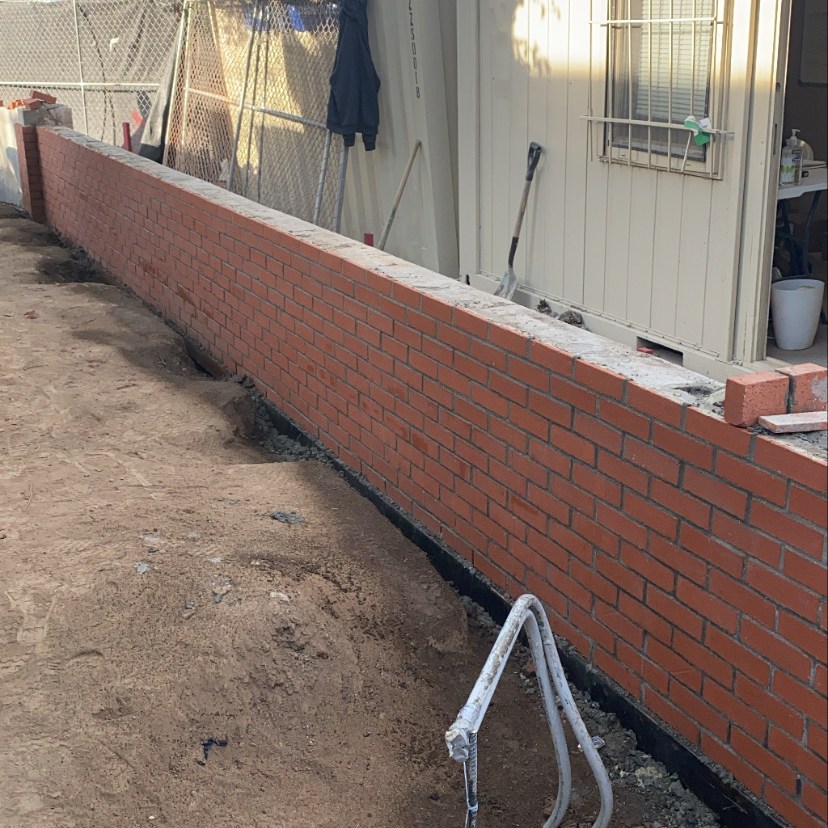 Freestanding walls, such as decorative garden walls, or property line walls that don’t retain any soil are constructed with a more shallow footing, and often utilize thinner rebar than those that retain soil. Once the wall is constructed, it can be finished with any number of decorative treatments, such as stucco, stone, or brick.