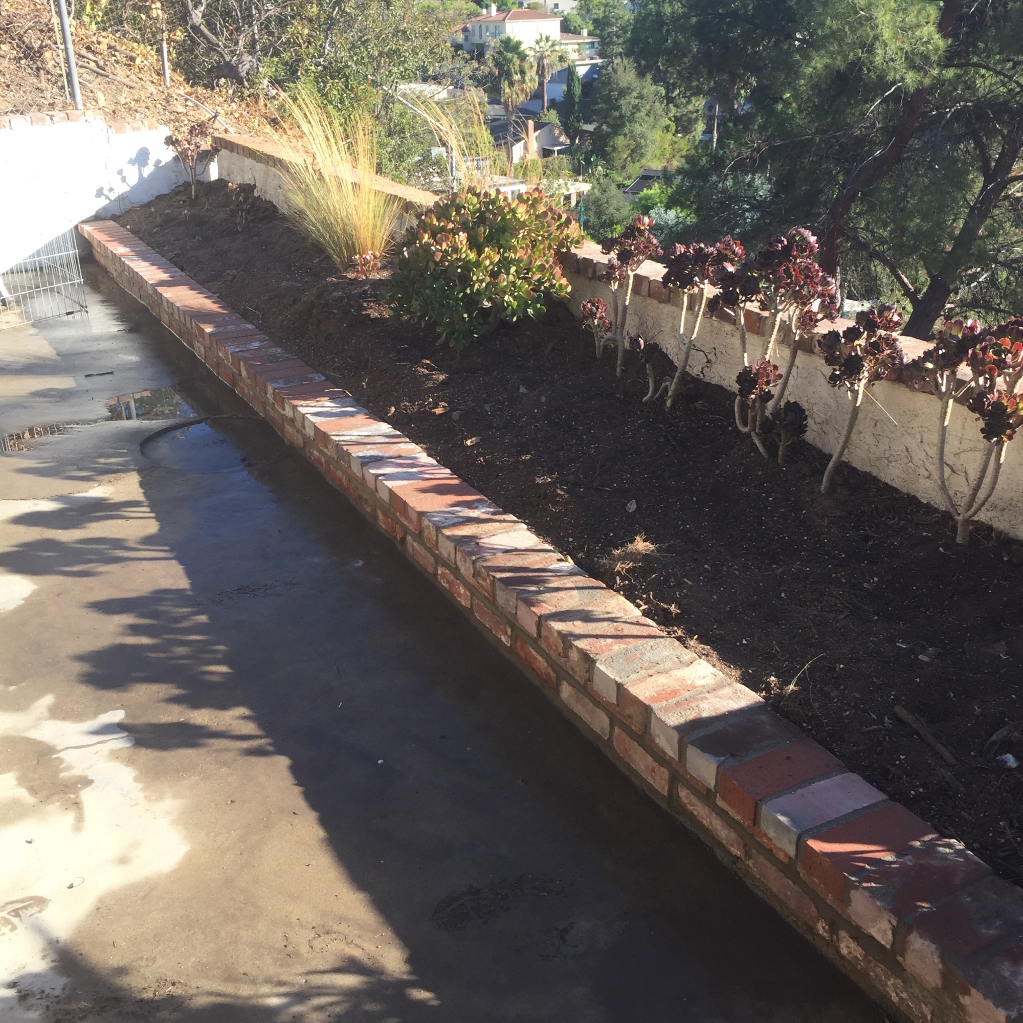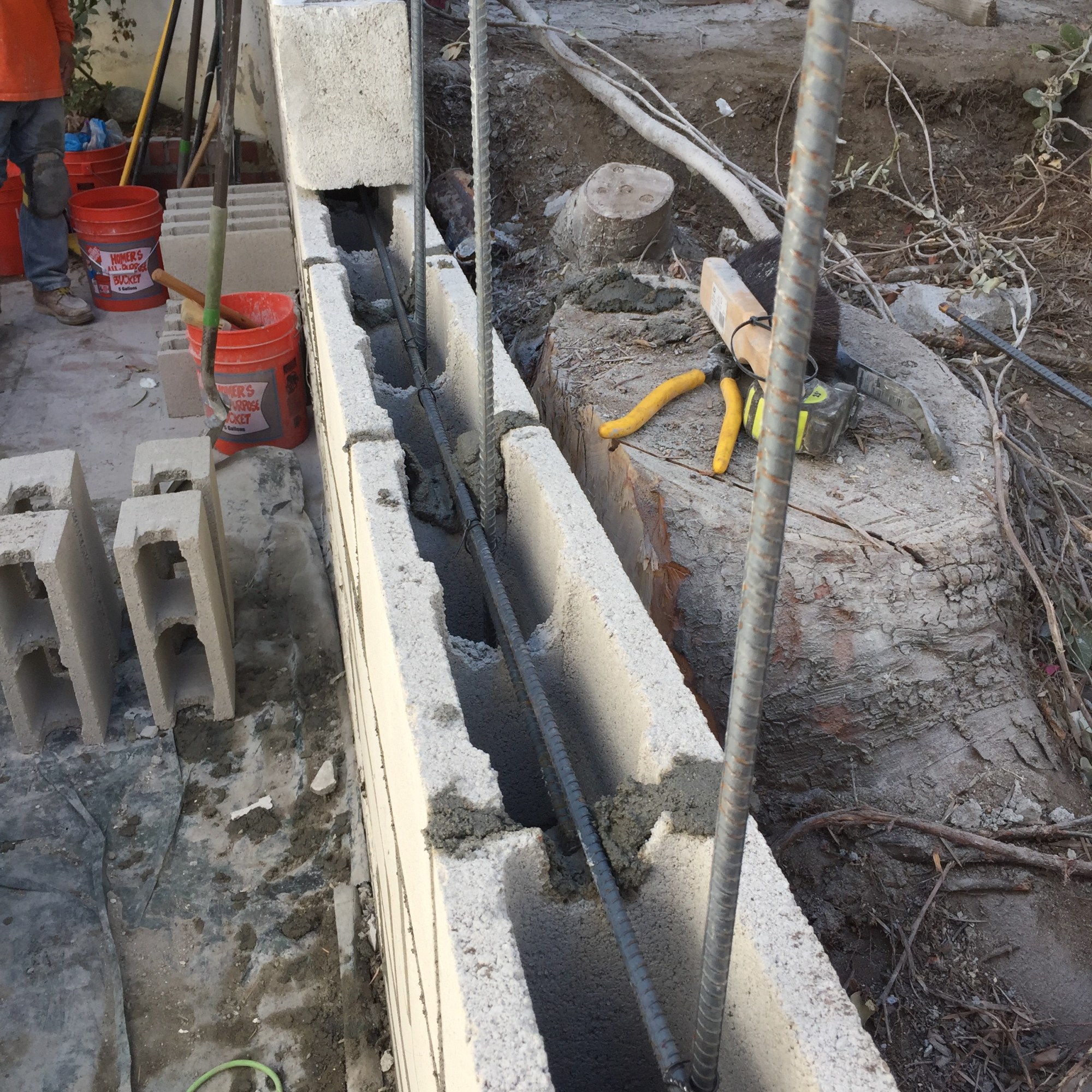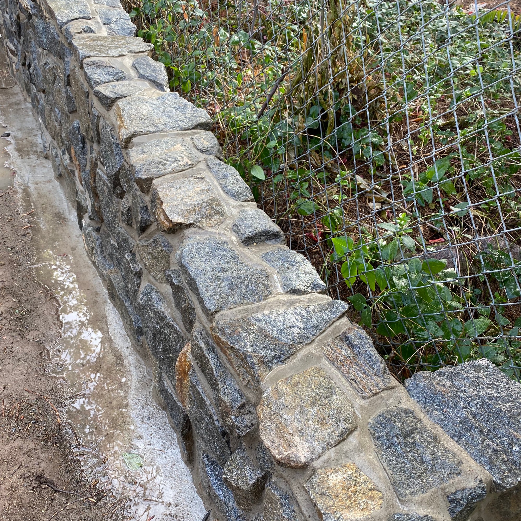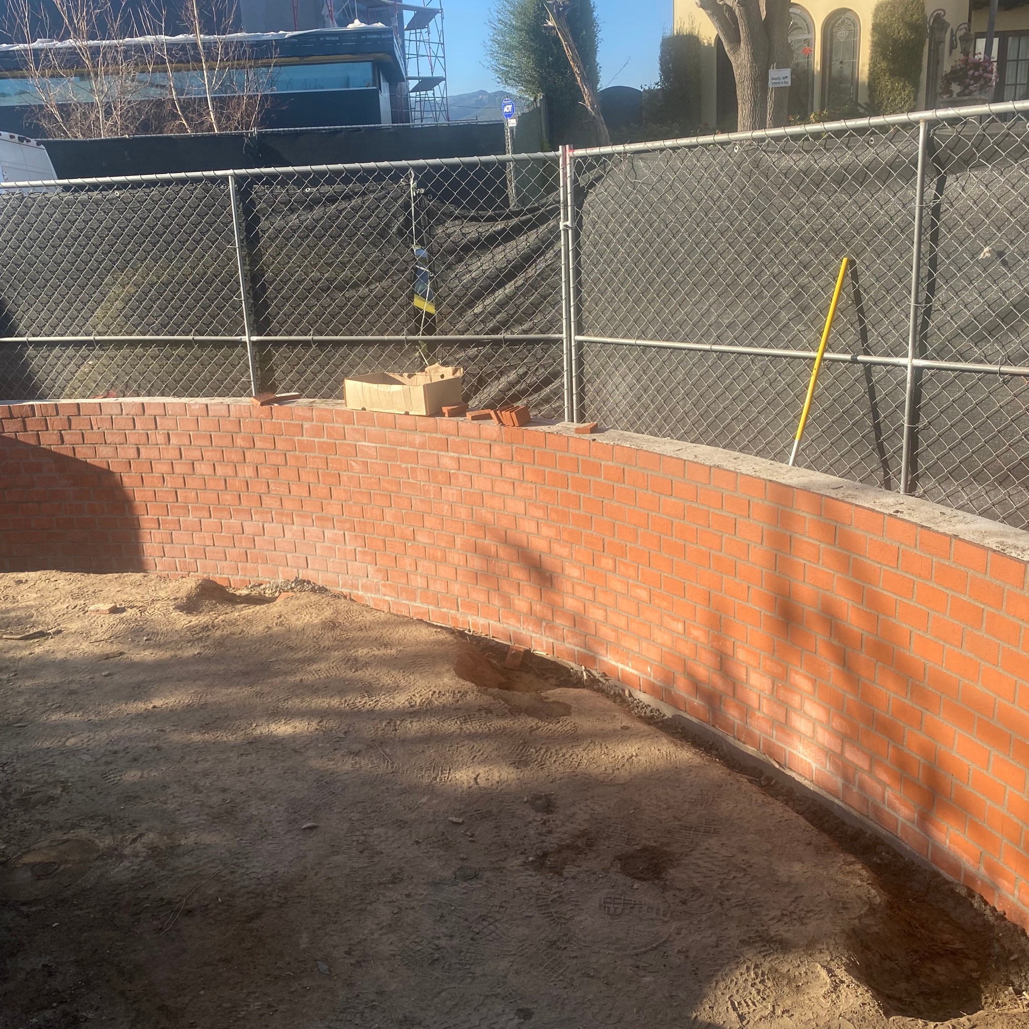 Freestanding walls, such as decorative garden walls, or property line walls that don’t retain any soil are constructed with a more shallow footing, and often utilize thinner rebar than those that retain soil. Once the wall is constructed, it can be finished with any number of decorative treatments, such as stucco, stone, or brick.