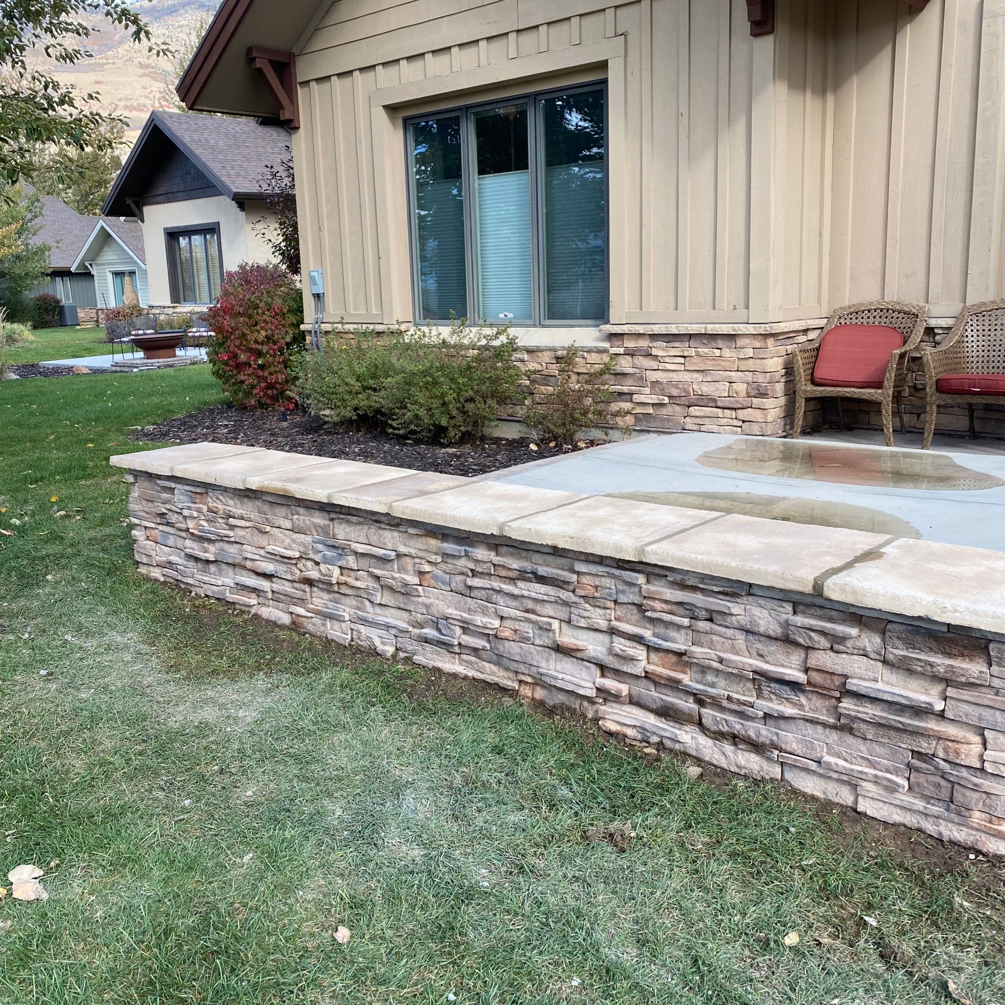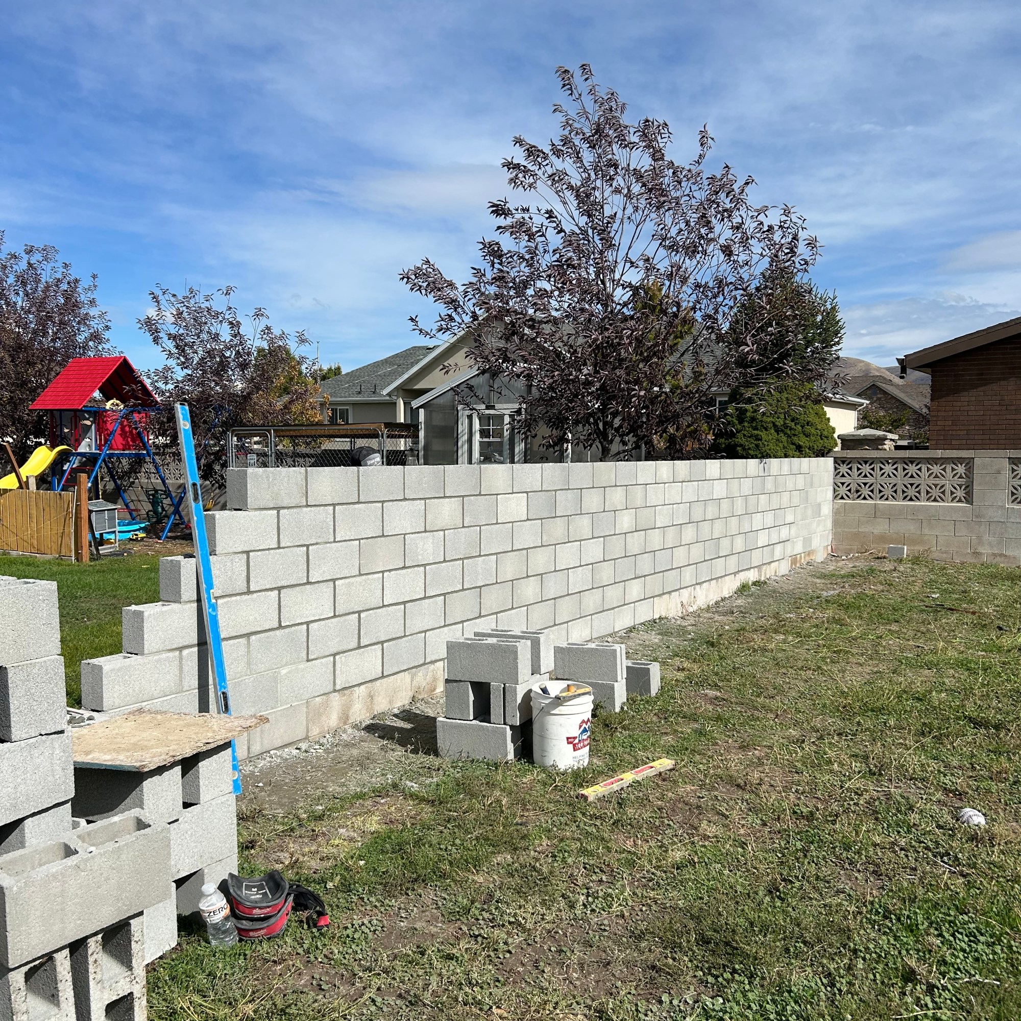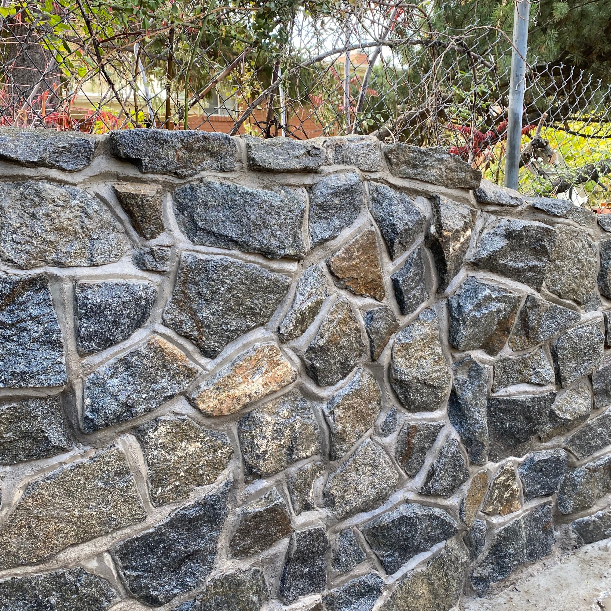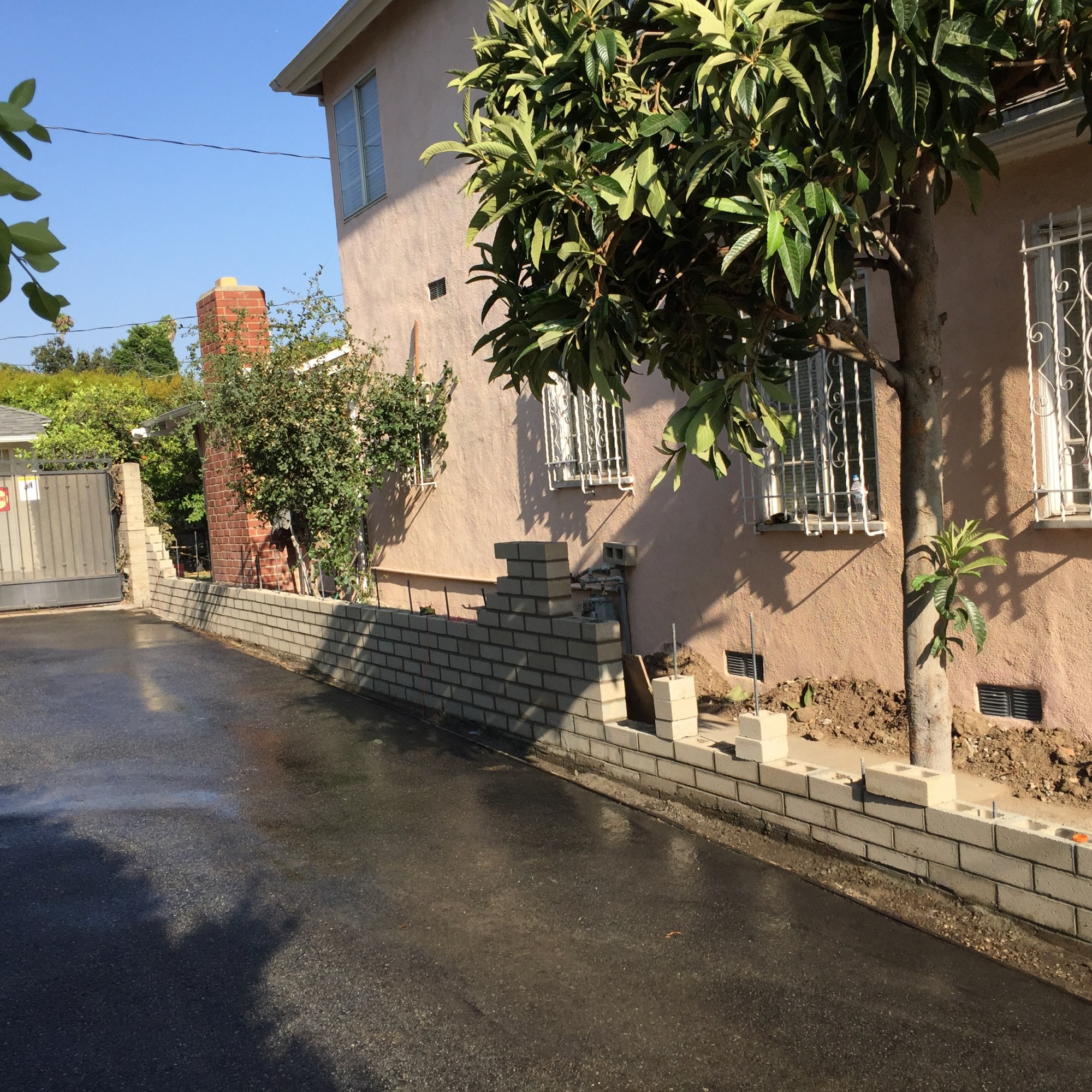 Once the block portion of the wall has been constructed, the facing and cap options listed above are available, in addition to many others. The wall may be given a veneer of stacked stone, stone facing, or brick. Another common option is to have the wall finished in smooth or rough colored stucco, which can be made to match the color of the residence quite closely, giving a cohesive look to the entire project.